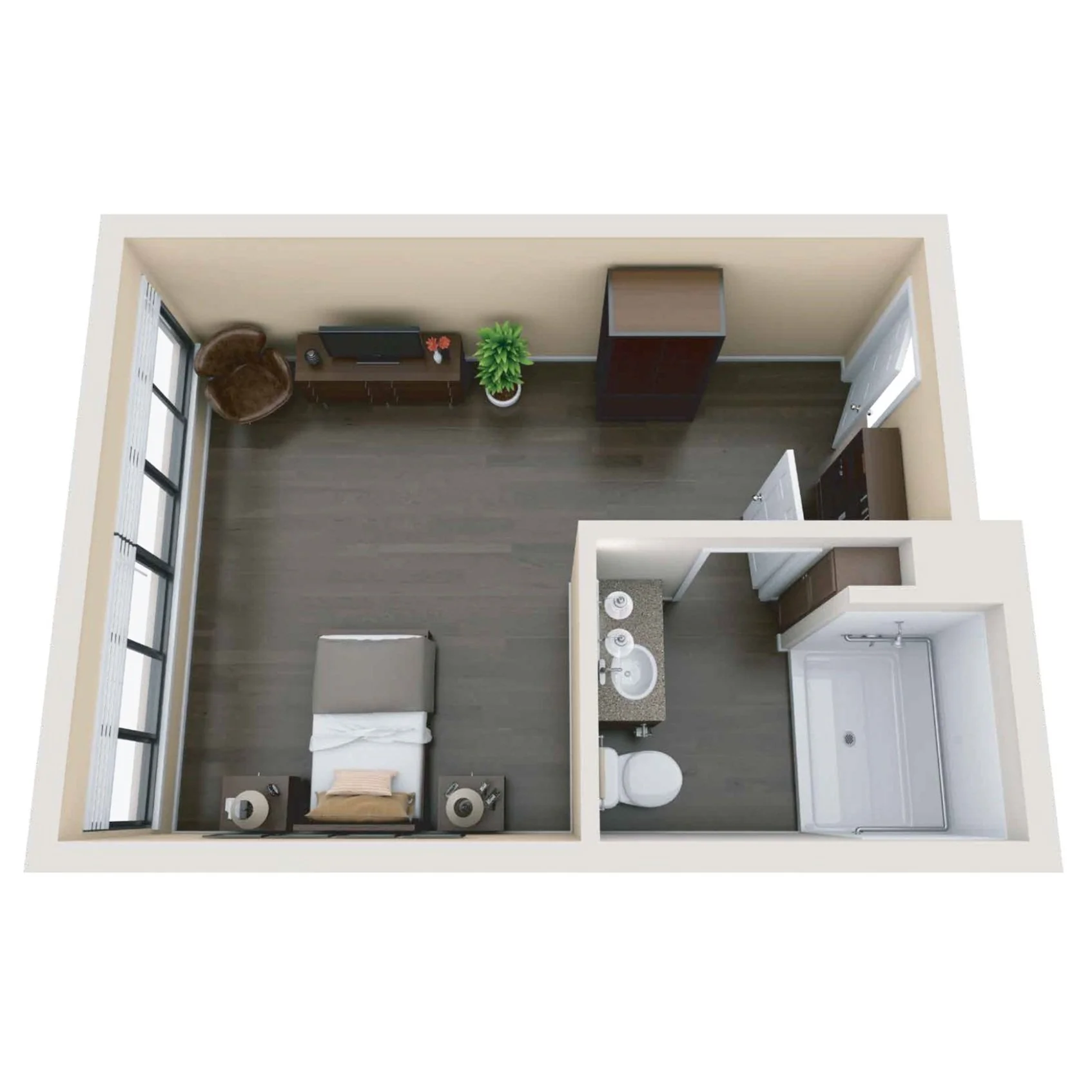 StudioAssisted Living One BedroomAssisted Living Private SuiteMemory Care Companion SuiteMemory Care *Not all unit layouts represented